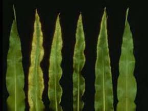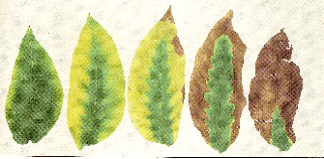 Signs of absent potassium include: older leaves, starting with the tips and gradually moving through the whole leaf, getting spots that turn dark yellow and dying, other leaves will have a graying at the margin which will progress to a rusty brown, leading to leaf death. There may also be a weakening of the stems.